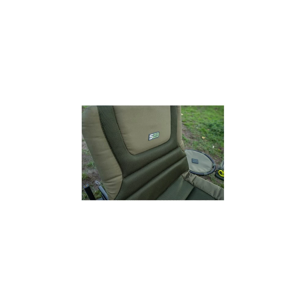 Korum Accessory Chair S23 Standard, is een nieuw gepatenteerde model, en heeft een verticale poten ontwerp dit maakt nu gebruik van een afgerond 23 mm vierkant poten, waarmee het gemakkelijker dan ooit te gebruiken is. De S23 Chair is veel verbetert in stabiliteit en de mogelijkheid om de poten aan te passen. Daar naast wordt de stoel ook gemakkelijker te gebruiken met de verschillende chair accessoires.