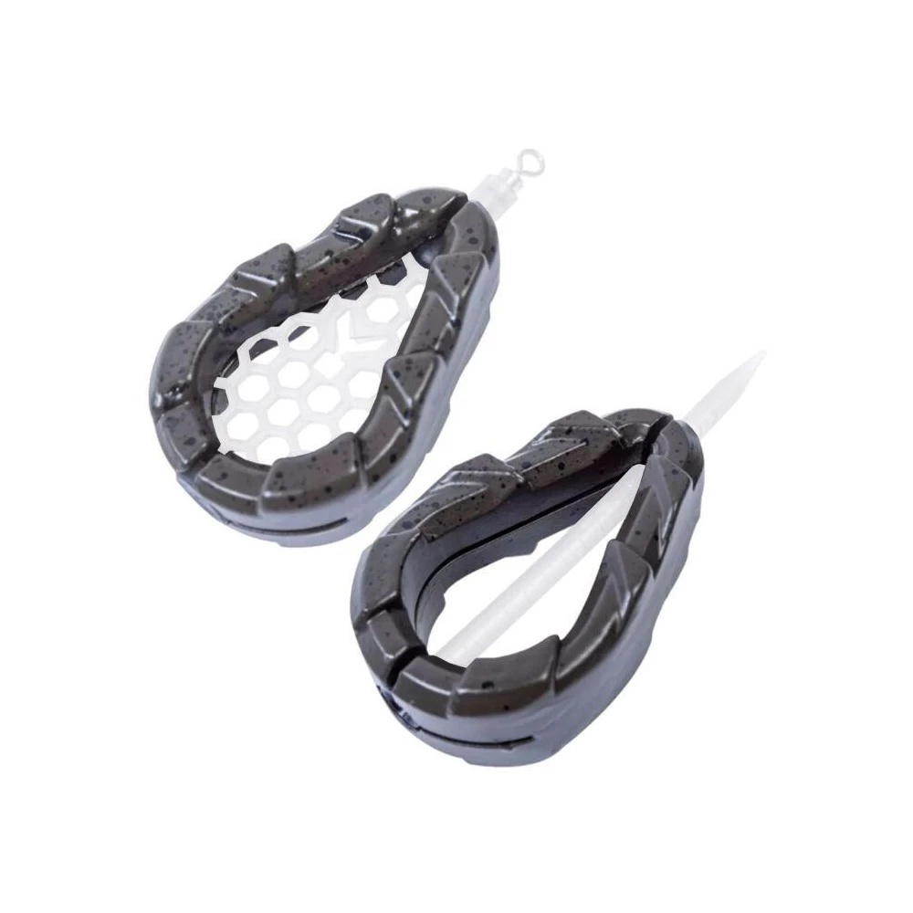 Korum Bait Gripper Leads 60 gr, deze zeer veelzijdig in te zetten ‘Gripper’ loodgewichten maken het mogelijk om lokvoer, deeg of pellets aan te brengen op het loodgewicht, zodat de werking overeen komt met die van een voerkorf. Het innovatieve mesh inzetstuk houdt voer vast, terwijl het hydrodynamische gewicht een goede greep houdt op de bodem van een meer of rivier. Het inzetstukje kan vervangen worden door een Korum inline inzetstuk indien gewenst, wanneer je kortere onderlijnen wilt gebruiken voor een ‘Method’ achtige presentatie.